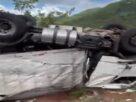Carreta carregada de biscoitos tomba após manobra arriscada na rodovia estadual que liga os municípios de Catunda e Monsenhor Tabosa.
