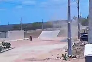Segundo testemunhas, o homem tentava entrar na residência de sua ex-companheira — que, segundo informações dos moradores, nem vive mais no local. Durante a tentativa de invasão, ele ficou com o calção enroscado na cerca elétrica, pendurado de cabeça para baixo, em uma posição constrangedora.
