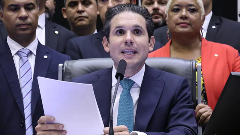 A felicidade do Presidente da Câmara dos deputados Hugo Motta comemorando