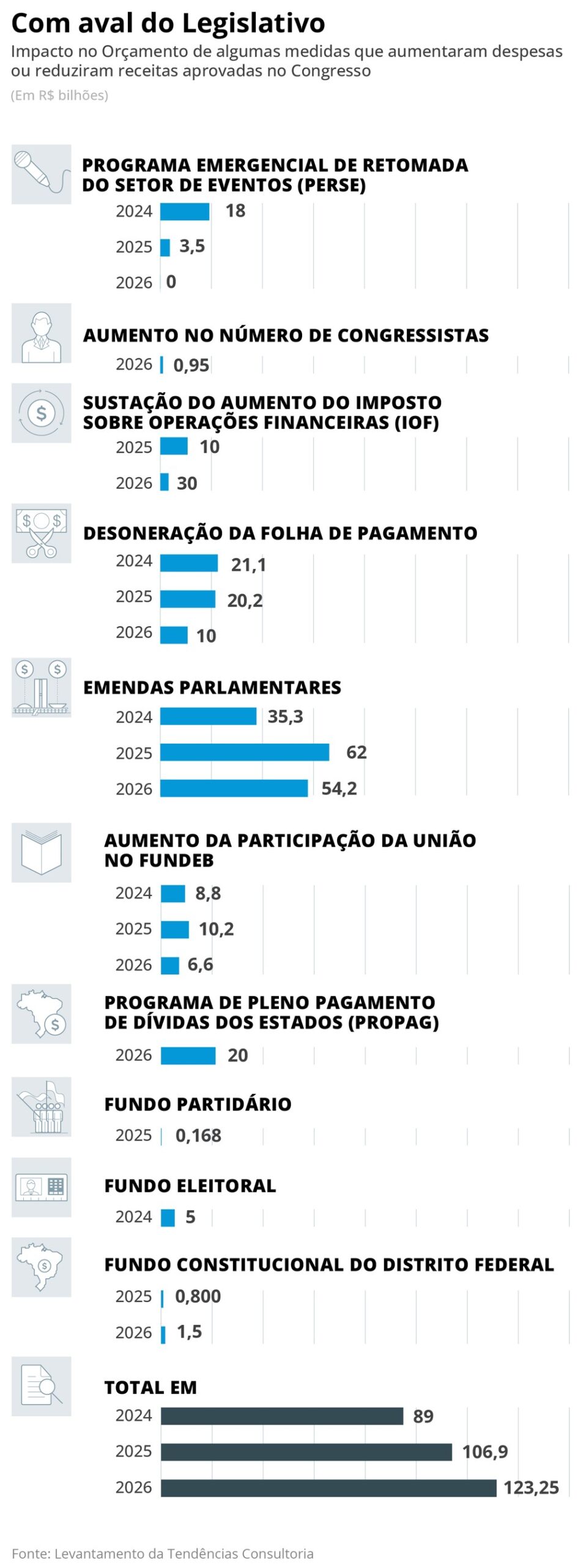 As emendas parlamentares saltaram de R$ 8,6 bilhões em 2014 para R$ 62 bilhões em 2025. Além disso, a criação de mais 18 cadeiras na Câmara dos Deputados para 2026 vai custar R$ 165 milhões por ano, segundo o cientista político Carlos Melo. E esses novos parlamentares certamente também vão querer suas fatias no Orçamento, elevando ainda mais os gastos da União.