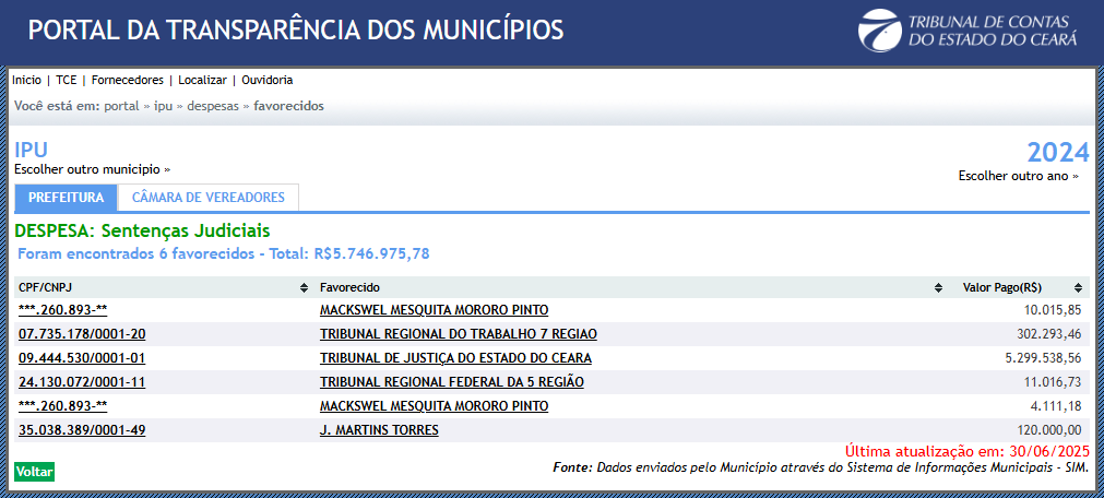 Mais de R$ 12 milhões pagos durante a gestão “Rufino”