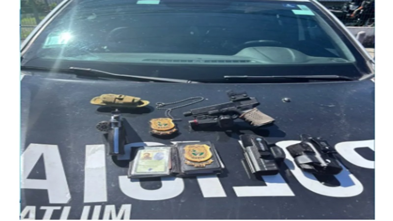 Suspeito usava distintivos falsos e simulacros de arma de fogo