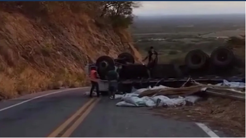 Um caminhão que transportava uma carga de ração para peixes capotou na manhã desta quarta-feira (30), na Ladeira de Tucuns, zona rural de Crateús, no interior do Ceará. Apesar do impacto, o motorista do veículo não sofreu ferimentos graves e foi atendido no local por uma equipe do Serviço de Atendimento Móvel de Urgência (Samu).