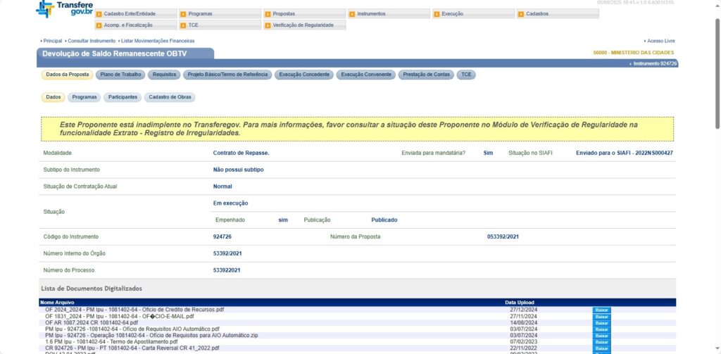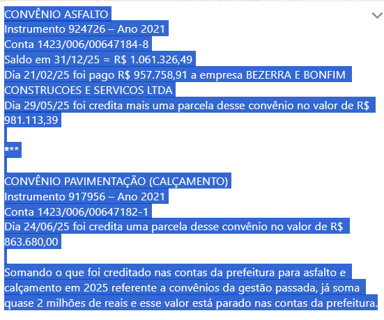 O vereador afirmou possuir todos os documentos que comprovam o saldo deixado e as pendências da obra, destacando que a população precisa de transparência sobre o destino dos recursos públicos e as razões para a paralisação dos trabalhos.