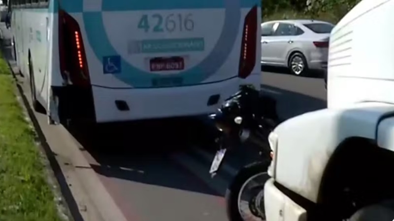 Um grave acidente de trânsito ocorrido na manhã desta quarta-feira (6) resultou na morte de um motociclista na Avenida Paulino Rocha, no Bairro Cajazeiras, em Fortaleza. A vítima colidiu na traseira de um ônibus, caiu na pista e acabou sendo atropelada por um caminhão que seguia logo atrás.