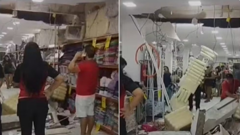 Na manhã desta terça-feira (23), três pessoas ficaram feridas após o teto de uma loja desabar no Centro de Maracanaú, na Região Metropolitana de Fortaleza. O incidente aconteceu por volta das 8h, justamente no momento em que o estabelecimento recebia clientes para sua inauguração.