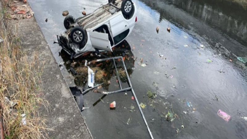 O veículo, modelo Gol, saiu da pista e caiu em um trecho do canal que não possui barreira de proteção. Esdras conseguiu sair do automóvel levando apenas a mochila.