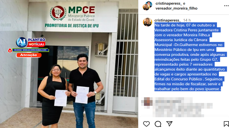 #NotíciaDeIpu 🤝 #CristinaPeres 🏛️ #CâmaraMunicipalDeIpu 📜 #GrupoG7 💬 #MinistérioPúblico ⚖️ #ConcursoPúblico 🧾 #MilenaDamasceno 👩‍💼 #Fiscalização 🕵️ #Transparência 🗣️ #PovoIpuense ❤️