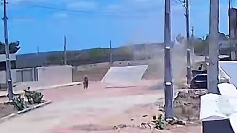 Imagens de segurança flagraram o momento em que a ventania tomou conta da rua e levantou uma placa de zinco que estava sendo usada como cobertura em uma obra no bairro Alto do São Francisco. O objeto foi lançado a vários metros de distância e atingiu em cheio um motociclista que passava pelo local.