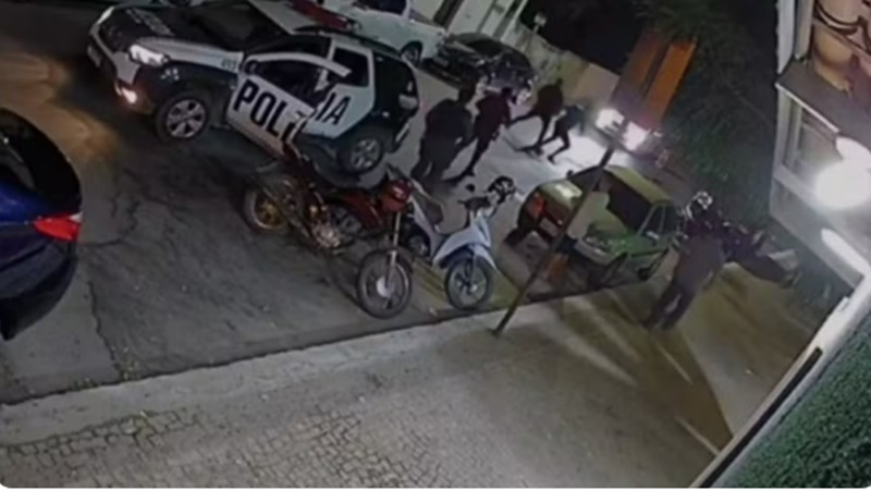 As câmeras de segurança do local registraram toda a ação. As imagens mostram o momento em que Rafael sai do estabelecimento e, antes de entrar em seu carro, é surpreendido pela agressão do policial, que o ataca de forma violenta.