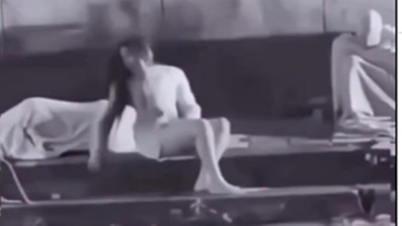 De acordo com as gravações, a modelo se senta ao lado do morador de rua e, poucos minutos depois, se deita no mesmo local, ficando coberta por um lençol usado por ele.