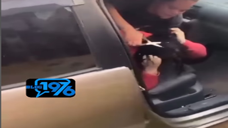 A esposa, tomada pela raiva, subiu no carro e pegou uma tesoura. Em seguida, começou a cortar o cabelo da prima, que gritava por socorro enquanto tudo era filmado. A gravação rapidamente ganhou as redes sociais e deixou muita gente boquiaberta com a cena inusitada.