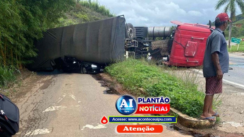 Um caminhão carregado de minério tombou na tarde desta última sexta-feira (19/12/2025) na BR-262, na altura do Km 186, em São Domingos do Prata, Região Central de Minas Gerais. O veículo de carga caiu sobre um carro de passeio que trafegava pela rodovia, provocando um acidente de grandes proporções.