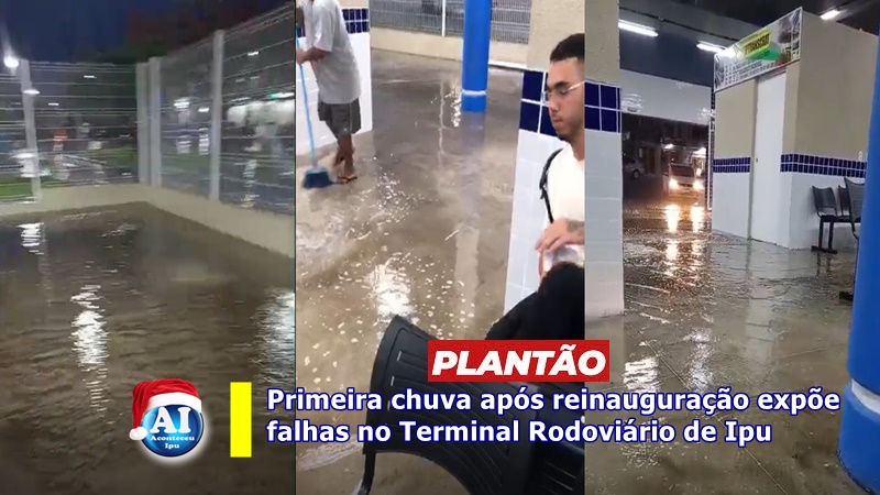 Uma chuva de pouco mais de 30 mm, registrada no final da tarde desta segunda-feira, 22 de dezembro de 2025, foi suficiente para provocar alagamentos no Terminal Rodoviário de Ipu, equipamento público recém-inaugurado pela prefeita Sra. Milena Damasceno.