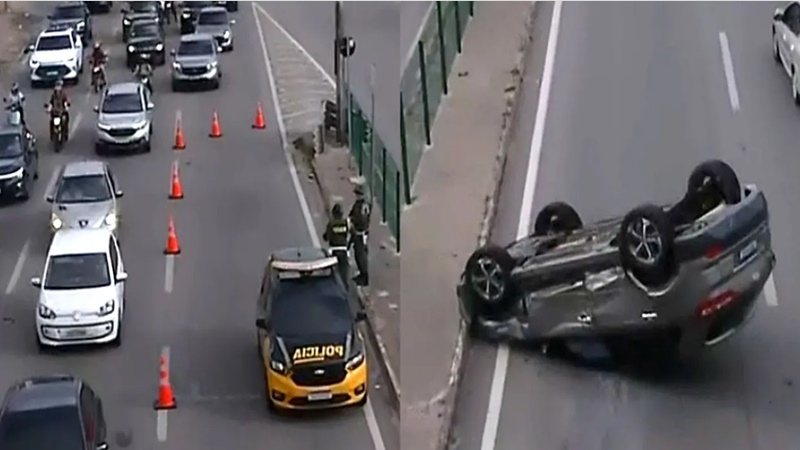 Com a força do impacto, os dois automóveis perderam o controle. Um deles foi removido pela seguradora, enquanto o outro permaneceu capotado na pista, ocupando uma das faixas da via.