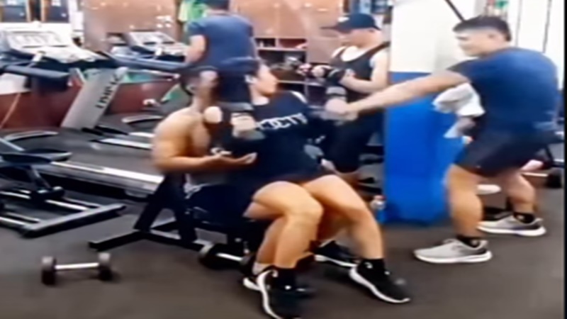 Um vídeo gravado dentro de uma academia e divulgado nas redes sociais tem provocado grande repercussão nos últimos dias. As imagens mostram uma mulher durante um exercício físico acompanhado por um personal trainer, enquanto, ao fundo, o marido surge segurando o filho do casal no colo.