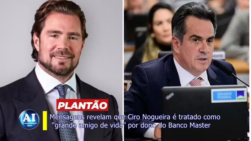 Segundo a notícia, mensagens trocadas por Daniel Vorcaro, dono do Banco Master, mostram que o ex-banqueiro trata o presidente do PP, senador Ciro Nogueira (PI), como “grande amigo de vida”.
