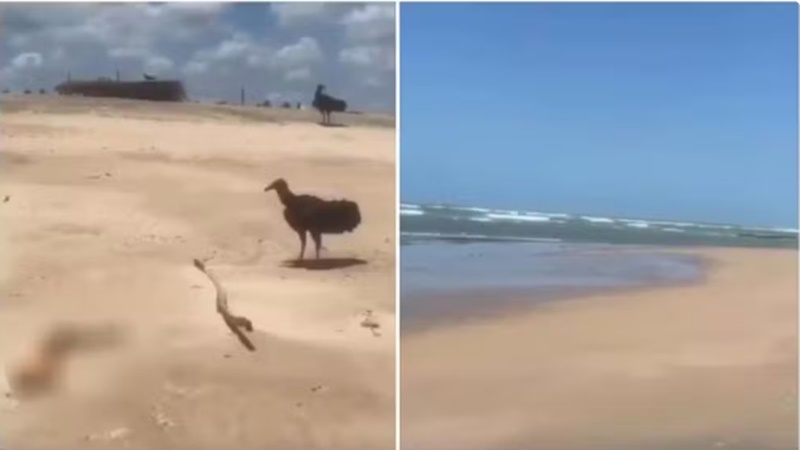 O vídeo também mostra a presença de urubus ao redor do local. Em determinado momento, uma das aves aparece bicando o membro enquanto outras permanecem próximas, o que acabou causando ainda mais impacto entre quem presenciou a situação.