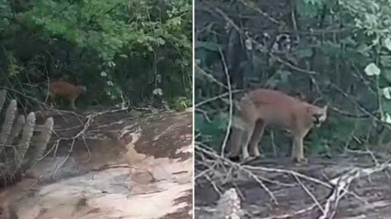 Um homem passou por um momento de tensão ao ficar frente a frente com uma onça-parda durante uma caminhada em uma área de mata na localidade de Pereiros, no município de Poranga.