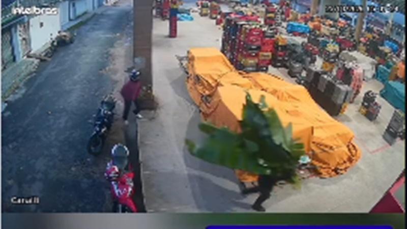 De acordo com informações, dois suspeitos chegaram ao local em uma motocicleta. Para não levantar suspeitas, um deles carregava folhas de bananeira, tentando se passar por um trabalhador que chegava para mais um dia de serviço.