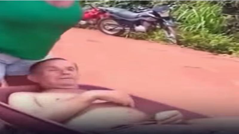 Nas imagens, a mulher aparece chegando ao local em uma motocicleta, levando consigo um carrinho de mão. Com a ajuda de pessoas que estavam por perto, o homem é colocado dentro do carrinho, já sem condições de se locomover sozinho.