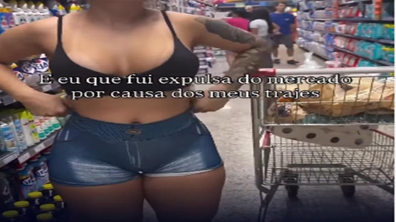 Um vídeo que ganhou grande repercussão nas redes sociais mostra o momento em que uma modelo é interpelada por uma funcionária de um supermercado por causa da roupa que usava.