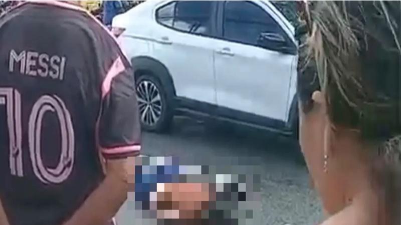 Moto derrapa, mulher cai na pista e é atingida por ônibus em cena trágica em Fortaleza