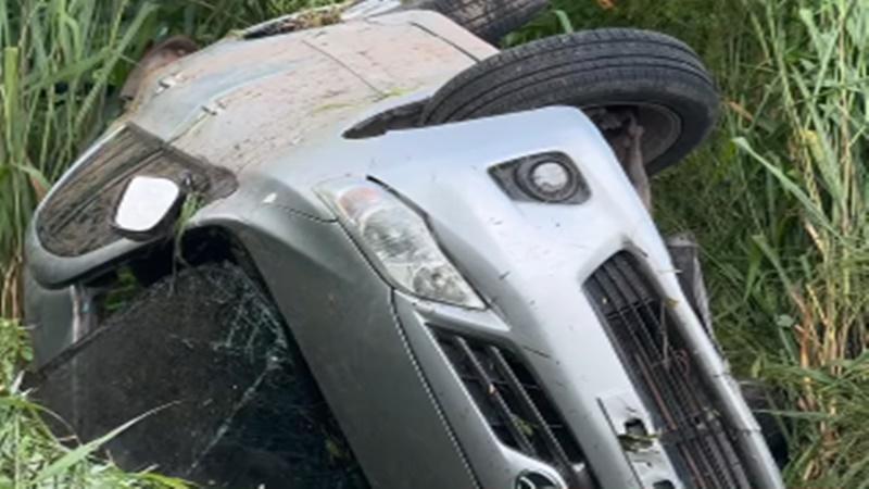 Com o impacto, um dos automóveis perdeu o controle, saiu da rodovia e acabou capotando. A cena chamou atenção de moradores e motoristas que passavam pelo trecho no momento do acidente.