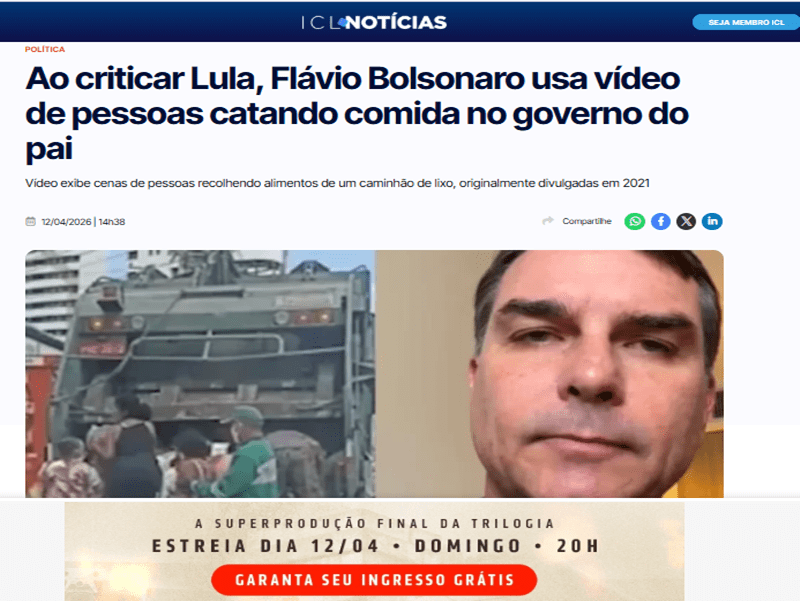 Na onda das mentiras: Vídeo usado por Flávio contra Lula mostra cena de fome na gestão do próprio pai em 2021.
